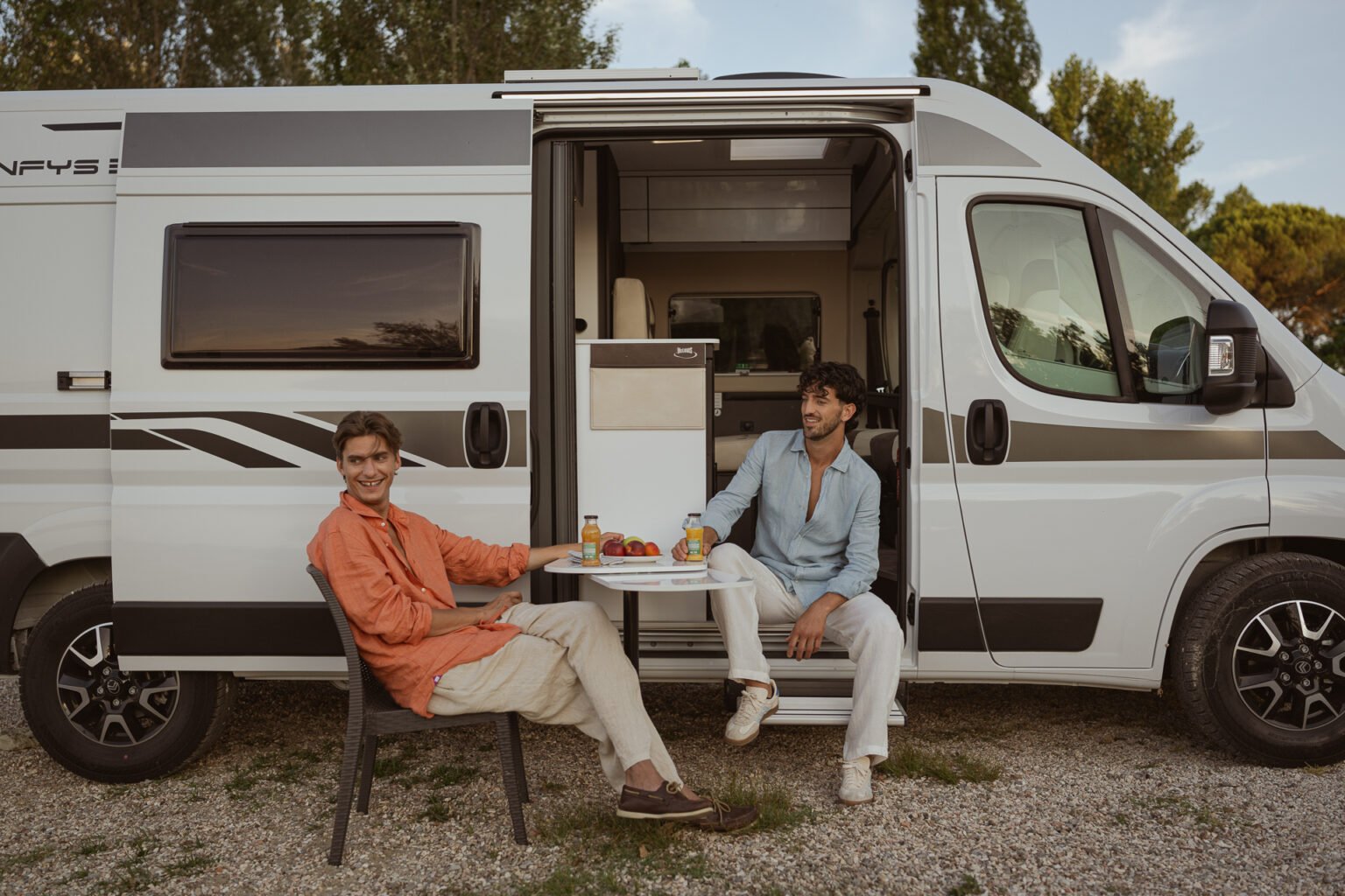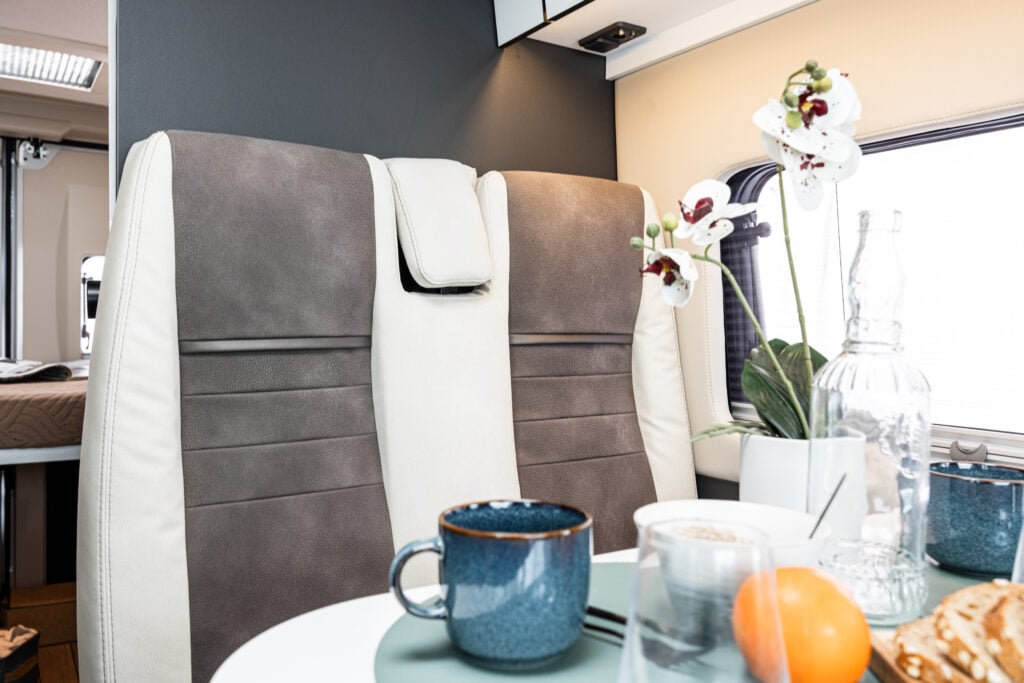 Las habitaciones están diseñadas para facilitar los movimientos y aprovechar al máximo el espacio. En la zona de comedor, el amplio pasillo permite una excelente libertad de movimientos, mientras que la mesa tiene una extensión extraíble para disponer de espacio de almacenamiento adicional. Su forma ergonómica está diseñada para facilitar la salida y el acceso al asiento del conductor. Muy versátil y funcional, también puede utilizarse en el exterior para disfrutar del placer de comer al aire libre cuando el tiempo es más suave.