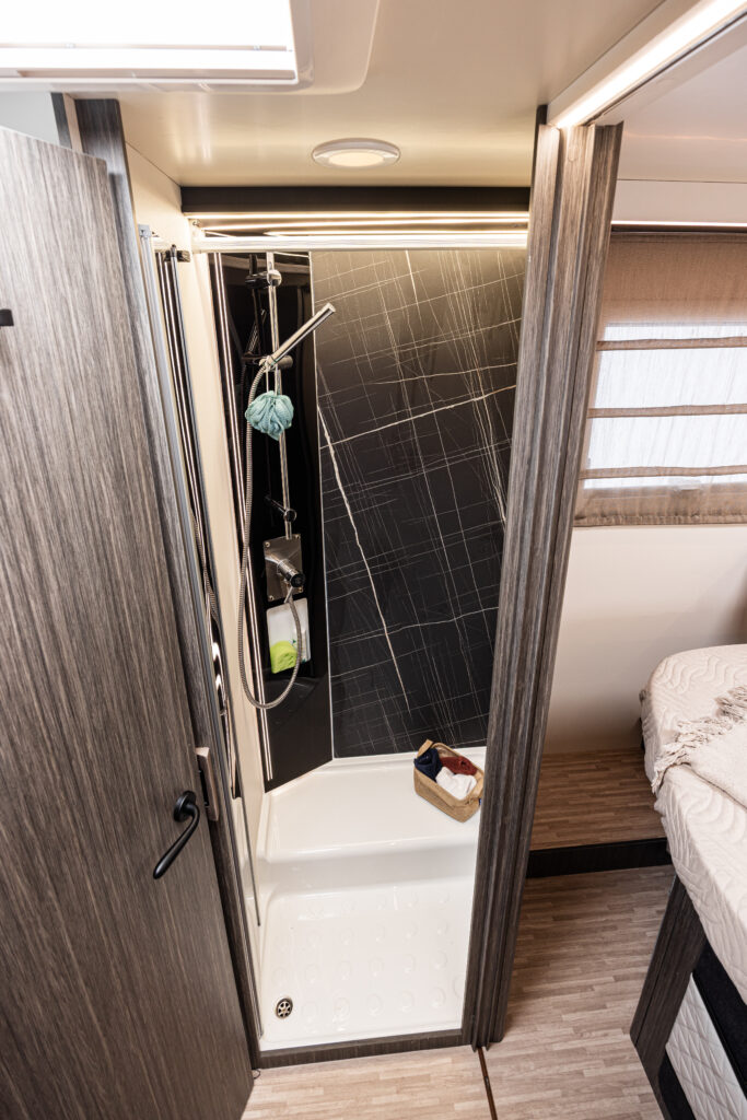 El baño está diseñado para garantizar el máximo confort, practicidad y privacidad durante cada desplazamiento. La claraboya ilumina naturalmente el ambiente y favorece una correcta ventilación, manteniendo la zona fresca y luminosa. La amplia ducha independiente garantiza libertad de movimiento y facilidad de uso en cualquier ocasión, incluso durante las paradas más breves.