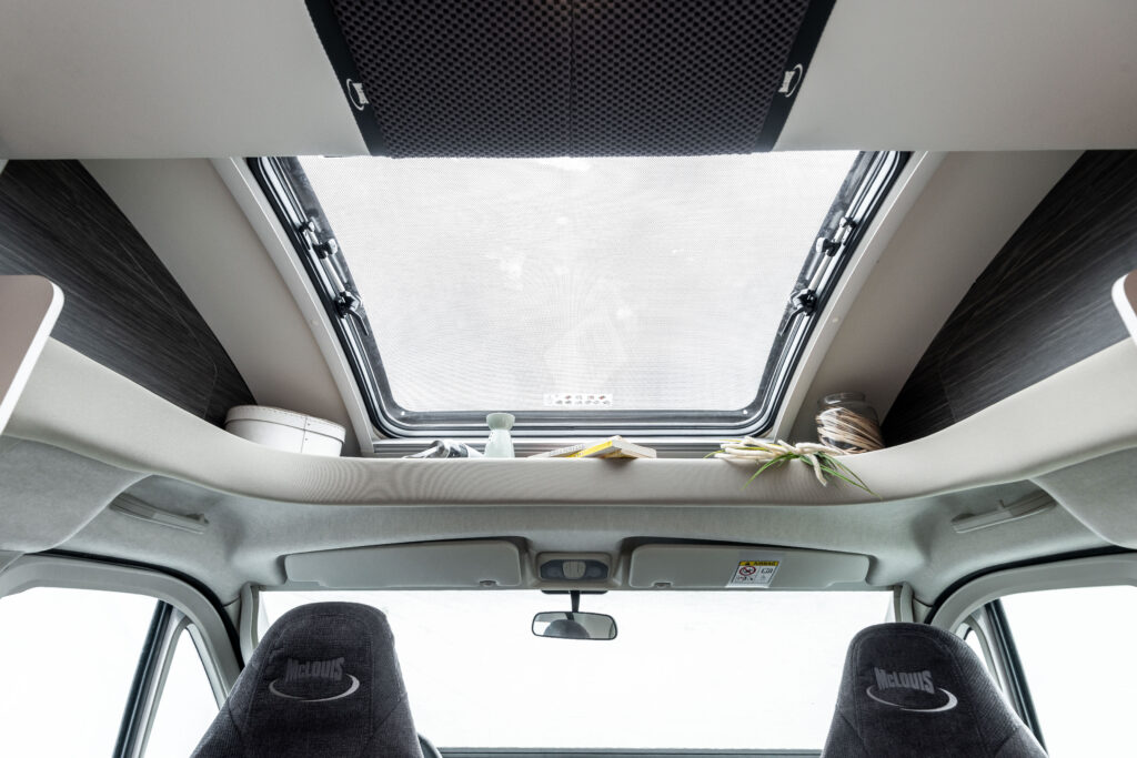 Elbaño está diseñado para garantizar el máximo confort y privacidad durante cada desplazamiento. La claraboya ilumina naturalmente el ambiente y favorece una correcta ventilación, manteniendo la zona fresca y luminosa. La amplia ducha independiente garantiza libertad de movimiento y facilidad de uso en cualquier ocasión, incluso durante las paradas más breves.