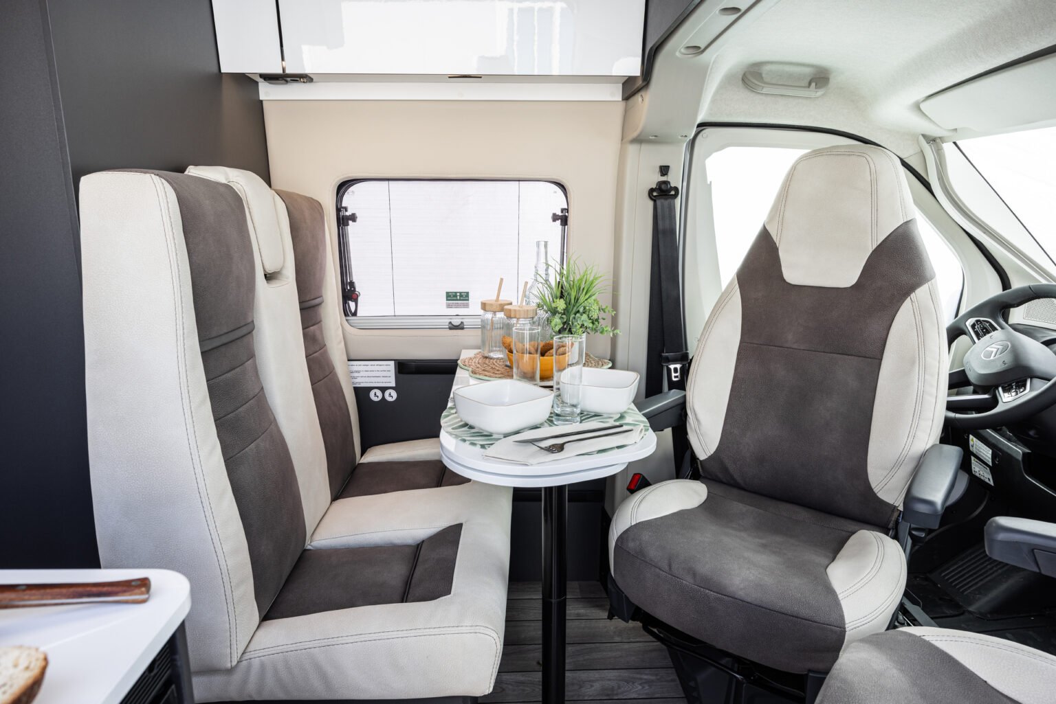 Nouvelle sellerie « Urban » de style automobile, en tissu et similicuir en phase avec les tendances actuelles. Des placards de couleur claire pour plus de luminosité et une ambiance plus chaleureuse.