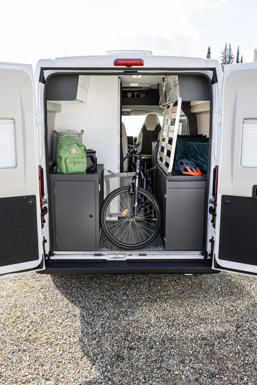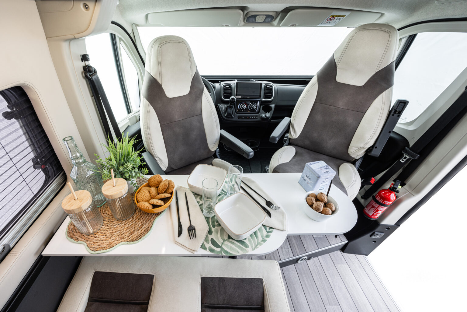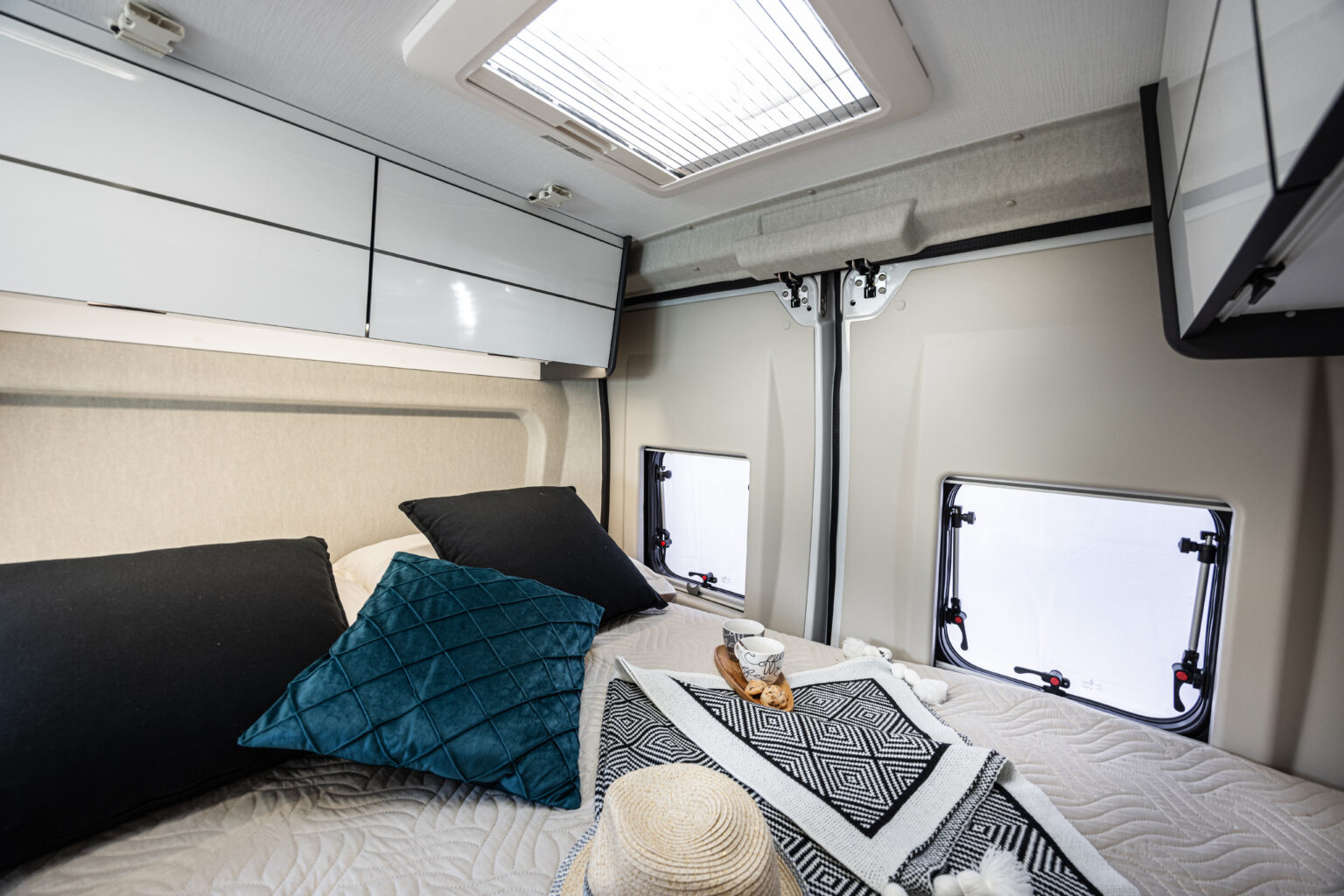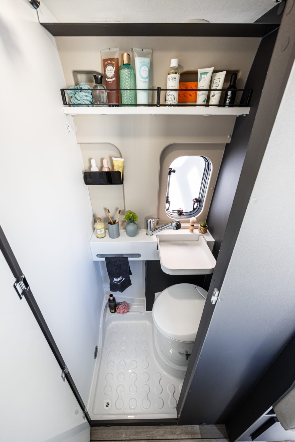 Le fourgon le plus compact de la gamme. Avec un lit double à l’arrière, une salle de bains compacte avec douche intégrée et un réfrigérateur à compression de 84 litres.