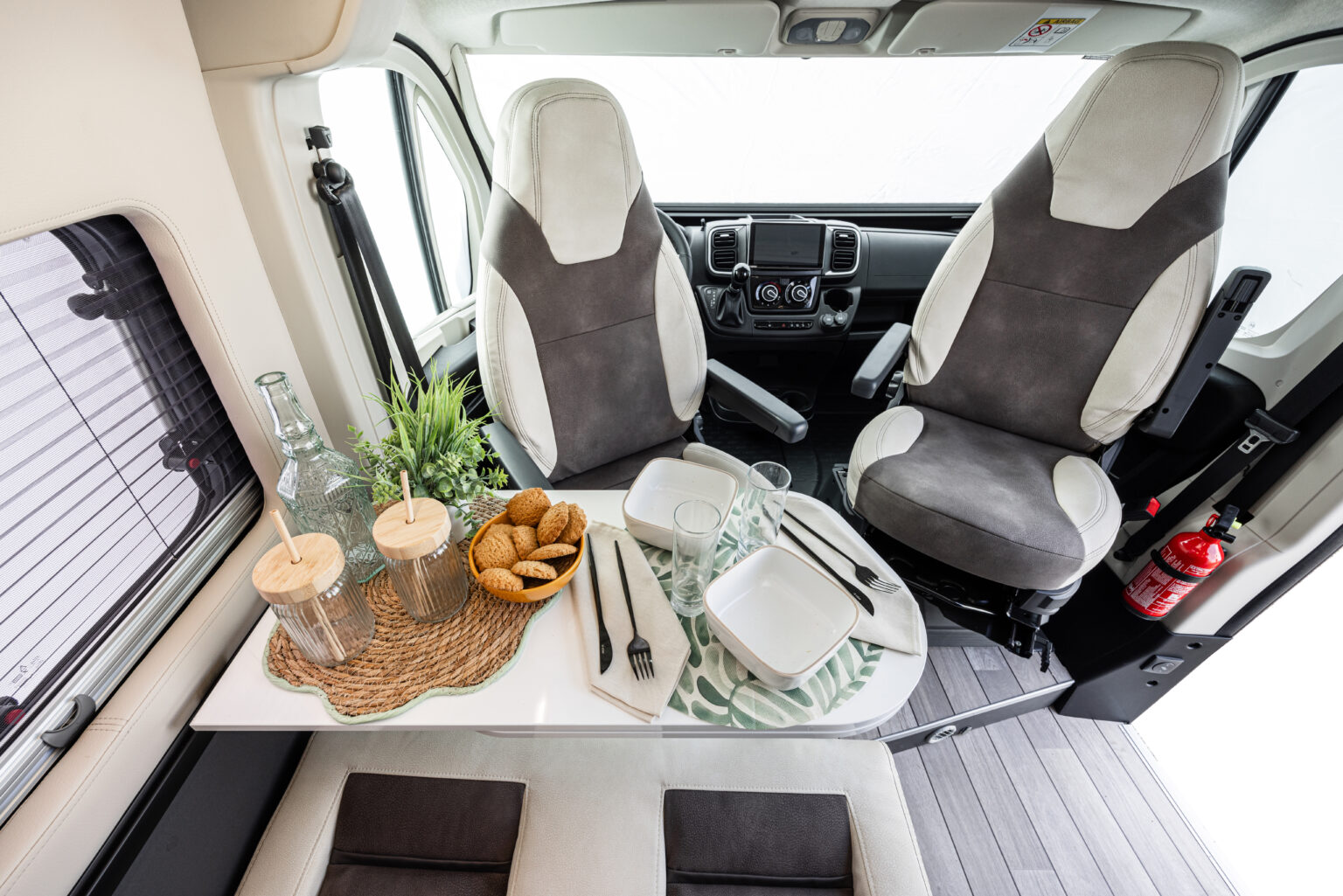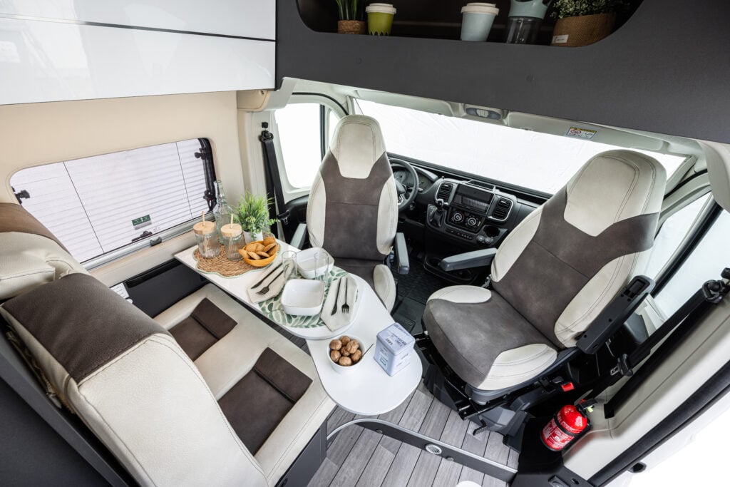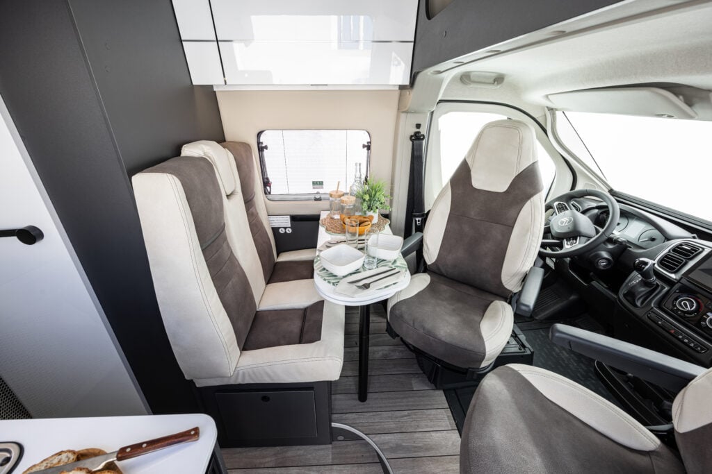 Nouvelle sellerie « Urban » de style automobile, en tissu et similicuir en phase avec les tendances actuelles. Des placards de couleur claire pour plus de luminosité et une ambiance plus chaleureuse.