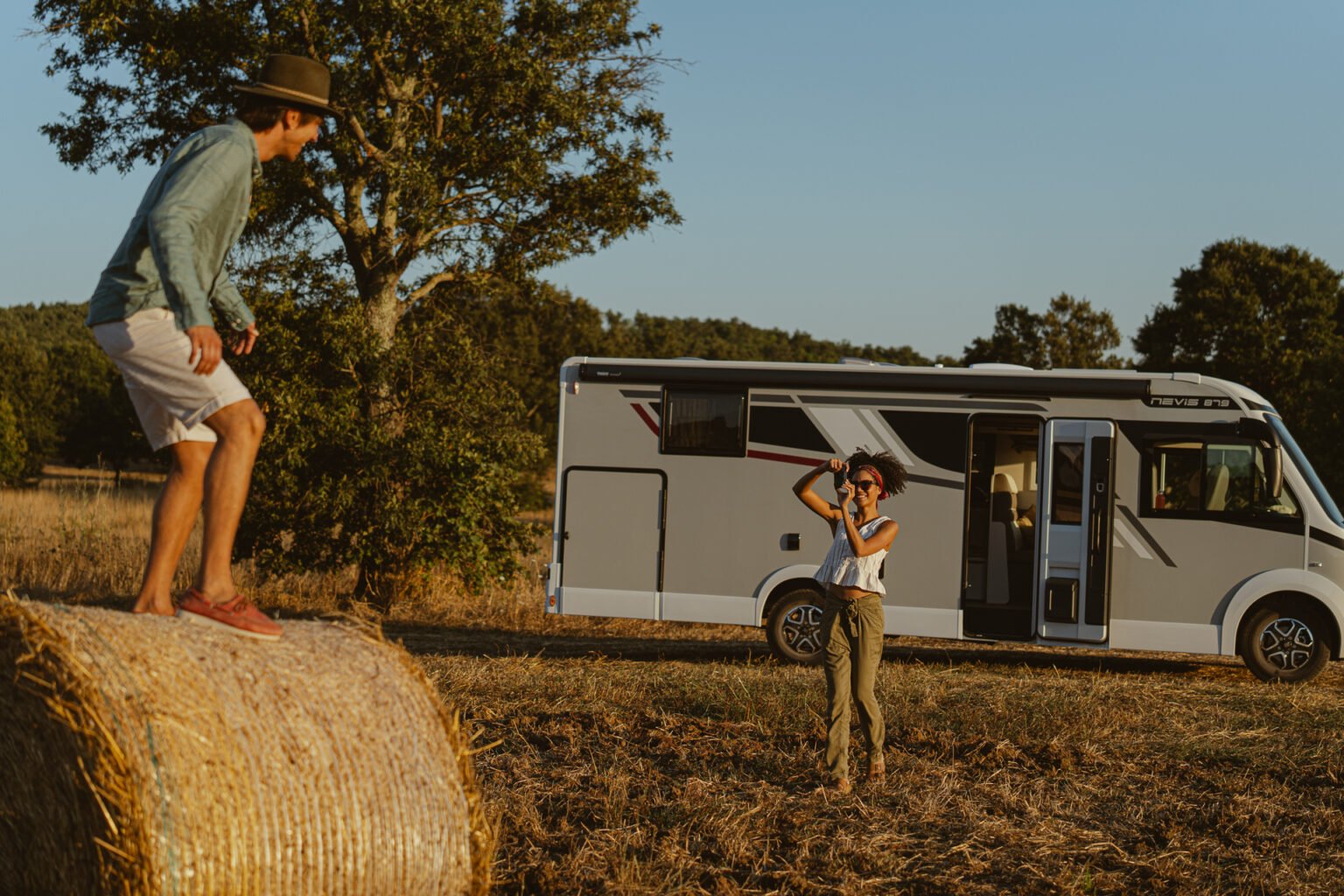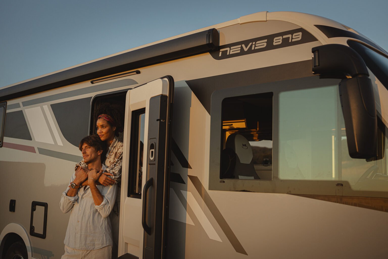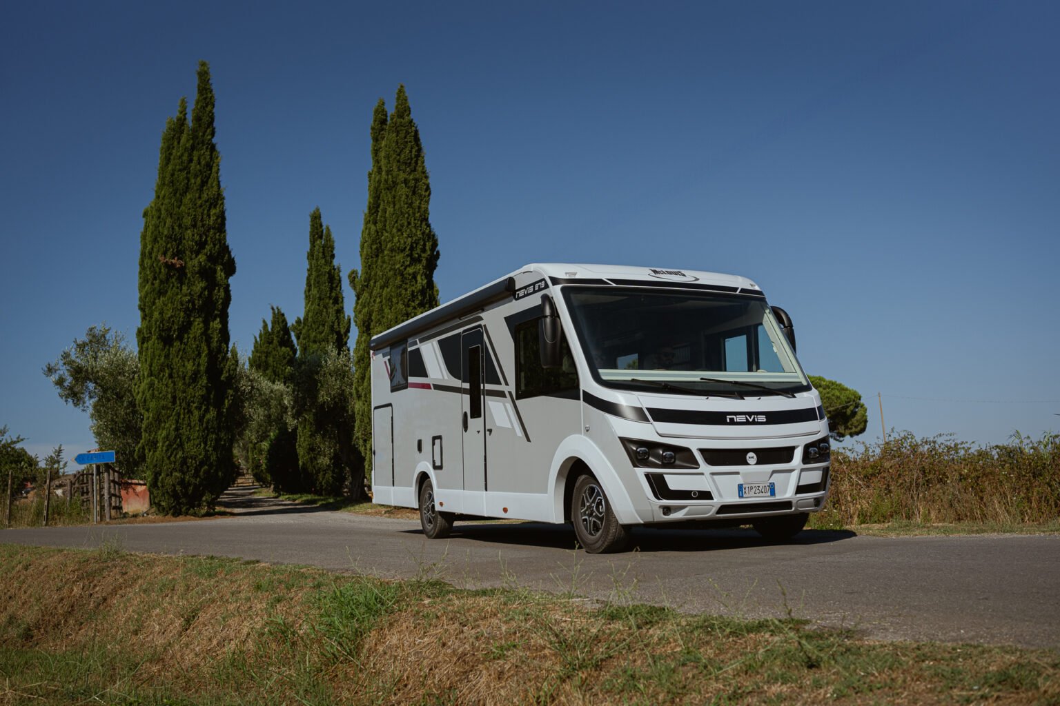 Nei modelli Nevis, il frontale e il paraurti sono stati riprogettati con un’estetica moderna, fari full LED e parabrezza panoramico, pensato per offrire una visibilità ottimale dalla cabina e migliorare la percezione degli ostacoli in fase di manovra.