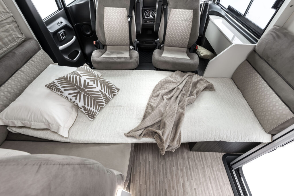 La zona giorno unisce spazio, luce e praticità, creando un ambiente accogliente e versatile. Offre comfort e libertà di movimento grazie a sedute ergonomiche e ben distribuite. Il pannello di controllo iNet X consente di gestire in modo semplice e centralizzato tutte le funzioni del veicolo, mentre la porta rigida di separazione tra zona giorno e notte garantisce privacy e tranquillità.